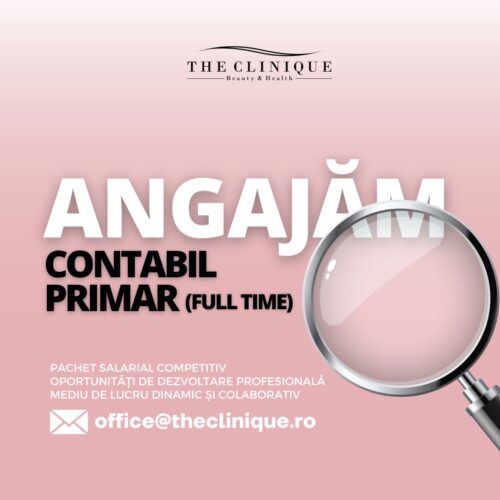Suntem în căutarea unui contabil primar cu experiență în domeniu (2-3 ani) pentru a se alătura echipei noastre!